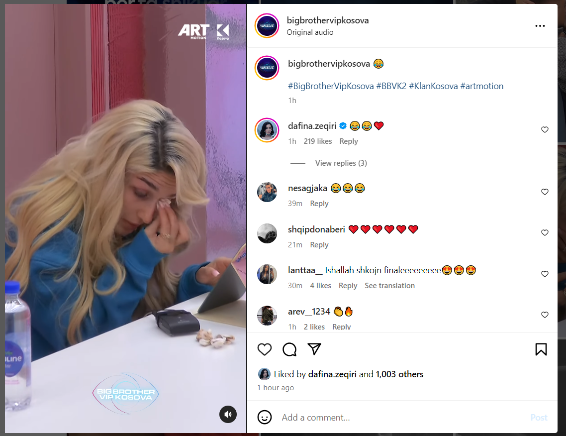 Duket se kjo e fundit është kënaqur me humorin e Ilirjanës, pasi para pak minutave në një video të postuar në Instagram Dafina i ka komentuar asaj, shkruan Kosovarja.