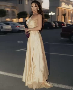 Veshja e saj, me nuanca delikate dhe detaje të rafinuara, atraksionin e saj e bëri edhe më të theksuar.