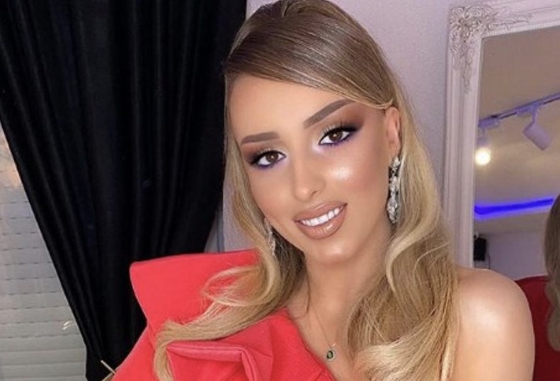 E veshur me fustan të kaltër dhe e rregulluar bukur, Aida po shkëlqen si asnjëherë me parë. /ORAinfo/