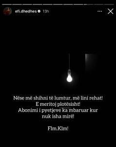 Efi ka ripostuar në instastory një mesazh, i cili duket tepër domethënës dhe mesa duket reflekton jetën e saj së fundmi.
