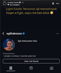 Gazetari e opinionisti Ronaldo Sharka ka përcjellë profilin e saj mirëpo ky veprim duket se nuk është pëlqyer nga menaxherët e Eglit.