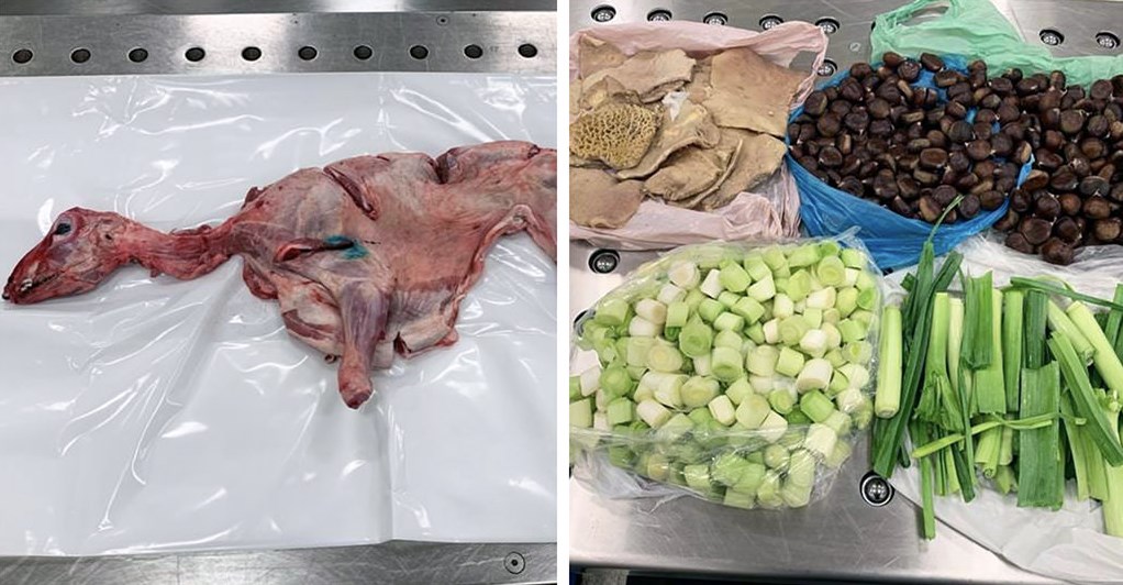 Në valixhen që u përkiste dy udhëtarëve shqiptarë u gjetën mish i papërpunuar, kremviçe, presh, plënc dhe gështenja.