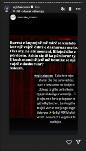 Familjarët e Eglit kanë shpërndarë një shkrim në instagramin e banorët, postim ky që tregon qëndrimin e tyre në këtë situat: