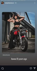 Përmes një InstaStory, ajo ka publikuar një foto të vjetër, duke zbuluar se si dukej para 15 vitesh. Në imazh, Juliana shfaqet e ulur mbi një motor, e veshur me rroba të zeza, duke ruajtur një stil të guximshëm dhe sensual që ka bërë për vete shumë adhurues.