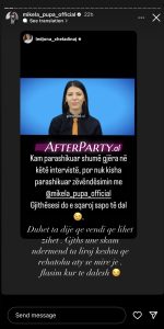 Lidhur me këtë, personi që i menaxhon instagramin Ledjonës bëri një reagim thumbues, duke shprehur se gjërat do të sqarohen kur Ledjona të dalë jashtë