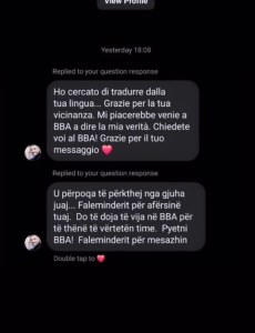 U përpoqa të përkthej nga gjuha juaj…Faleminderit për afërsinë tuaj. Do të doja të vija në BBA për të thënë të vërtetën time. Pyetni BBA! Faleminderit për mesazhin”, shkruhet në postim.