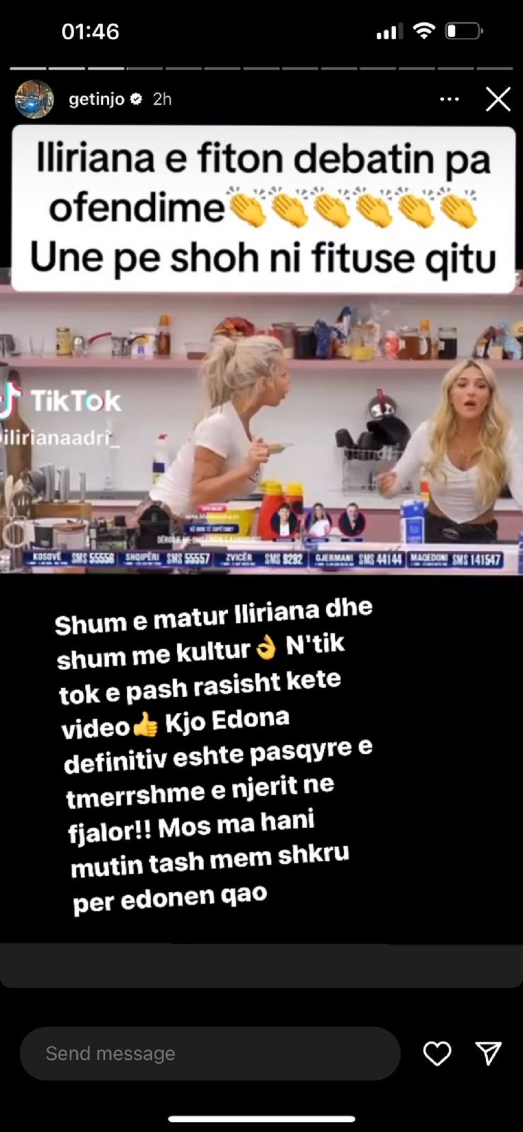 Ditën e djeshme ai ka postuar në Instastory një video TikTok-u ku po debatonte Ilirjana me Edonën.