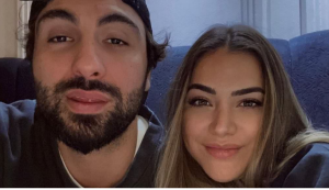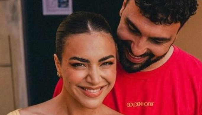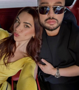 Në krahët e grimerit Arbër Bytyqi, Sara duket tejet e lumtur.