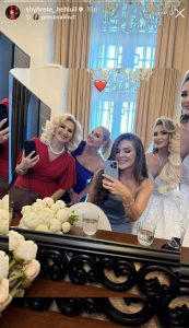 E veshur me shumë elegancë dhe e kuruar në çdo detaj, Shyhretja së bashku me të bijat kanë rrëmbyer vëmendjen e rrjeteve sociale, duke u komentuar për stilin dhe bukurinë.