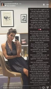 Në këtë periudhë të fundit, kam kuptuar shumë brenda vetes idenë se kisha një problem. Por jo, ajo që kam nuk është një problem, është një vështirësi, dhe vështirësitë kapërcehen. Dua t’ua them me zemër atyre që kanë komentuar me negativitet dhe agresivitet: kjo gjë që kam unë nuk është diçka me të cilën kam zgjedhur të lind apo ta mbaj. KUJTO!