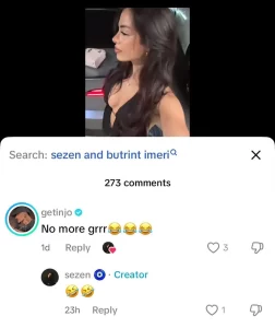 Komenti i tij me fjalët e njohura “Gerr” ka shkaktuar një valë reagimesh dhe spekulimesh. Modelja Sezen ka reaguar menjëherë, duke iu përgjigjur me disa emoji funny, një veprim që tregon se ajo ka humor dhe është e hapur për biseda me ndjekësit e saj.