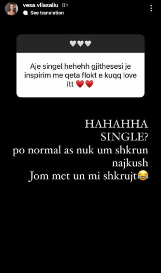 “SIngle? Po normal as nuk më shkruan ndokush. Kam mbet unë më i shkruar”, ka shkruar Vesa