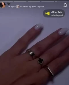 Një detaj tjetër që jep një nuancë të veçantë këtij momenti është fakti se në postimin e saj, ajo ka përdorur këngën “All of Me” të John Legend, e njohur për përmbajtjen romantike.