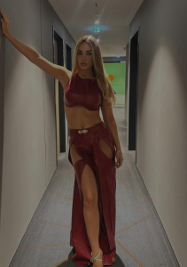 Myrtezaj ka publikuar disa fotografi me një veshje të kuqe.